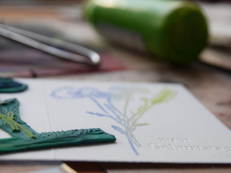 In meinem Atelier gebe ich regelmäßig Kurse zu verschiedenen Drucktechniken.